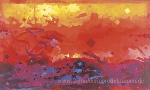 Wir bieten Ihnen eine handgefertigte Reproduktion auf Leinwand des berühmten Kunstwerks 'Ohne Titel' von Abdul Qader Al Raes, aus dem Reproduktionsmuseum.