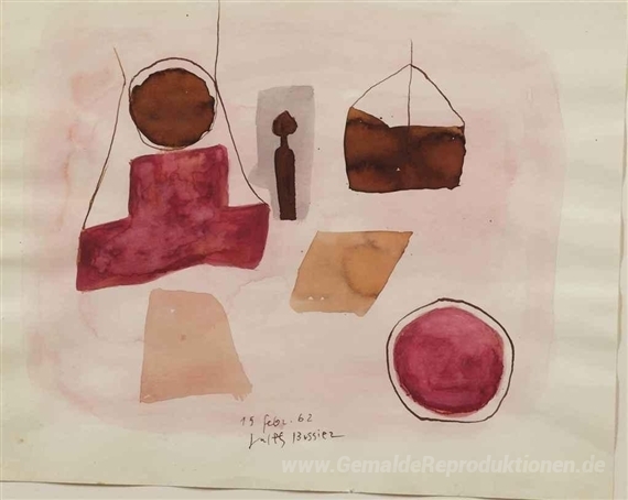 Wir bieten Ihnen eine handgefertigte Reproduktion auf Leinwand des berühmten Kunstwerks '15.Febr.62' von Julius Bissier, aus dem Reproduktionsmuseum.