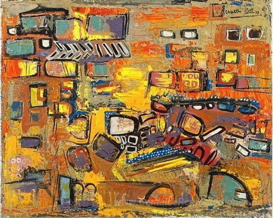 Willkommen in der Welt der Ölgemälde, wo kreative Meisterwerke wie Abstract Composition von Walter Battiss darauf warten, Ihre Räume zu bereichern. Battiss, ein Pionier der modernen Kunst in Südafrika, kombiniert lebendige Farben und dynamische Formen, um emotionale Resonanz und ein Gefühl von Bewegung einzufangen. Seine Werke verbinden traditionelle Techniken mit einem zeitgenössischen Ansatz, was sie zu einzigartigen Ausdrucksformen macht.