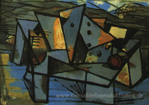 Wir bieten Ihnen eine handgefertigte Reproduktion auf Leinwand des berühmten Kunstwerks 'Abstrakt Baugewerbe' von Marcel Janco, aus dem Reproduktionsmuseum.