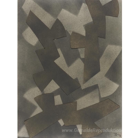 Wir bieten Ihnen eine handgefertigte Reproduktion auf Leinwand des berühmten Kunstwerks 'Abstrakte Komposition' von Hans Richter, aus dem Reproduktionsmuseum.