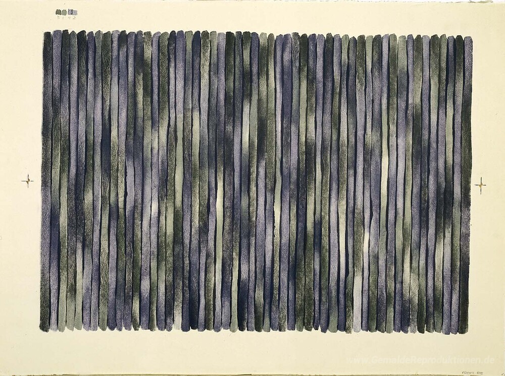 Wir bieten Ihnen eine handgefertigte Reproduktion auf Leinwand des berühmten Kunstwerks 'Adams Rippe' von Gene Davis, aus dem Reproduktionsmuseum.