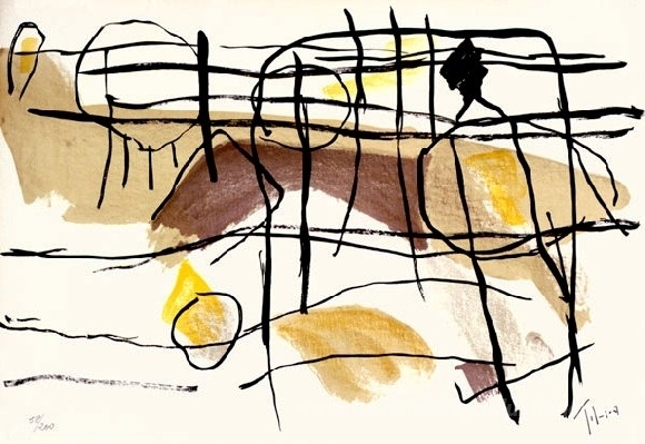 Wir bieten Ihnen eine handgefertigte Reproduktion auf Leinwand des berühmten Kunstwerks 'Age de fer II' von Pierre Tal-Coat, aus dem Reproduktionsmuseum.