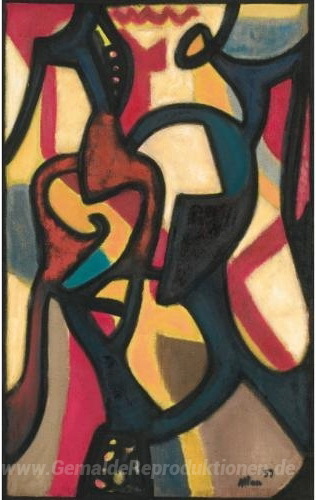 Wir bieten Ihnen eine handgefertigte Reproduktion auf Leinwand des berühmten Kunstwerks 'Agrigente' von Jean-Michel Atlan, aus dem Reproduktionsmuseum.