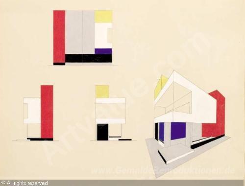 Wir bieten Ihnen eine handgefertigte Reproduktion auf Leinwand des berühmten Kunstwerks 'Architektur-Entwürfe' von Félix Del Marle, aus dem Reproduktionsmuseum.