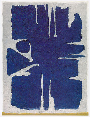 Wir bieten Ihnen eine handgefertigte Reproduktion auf Leinwand des berühmten Kunstwerks 'Aru Dark Blue' von Willi Baumeister, aus dem Reproduktionsmuseum.