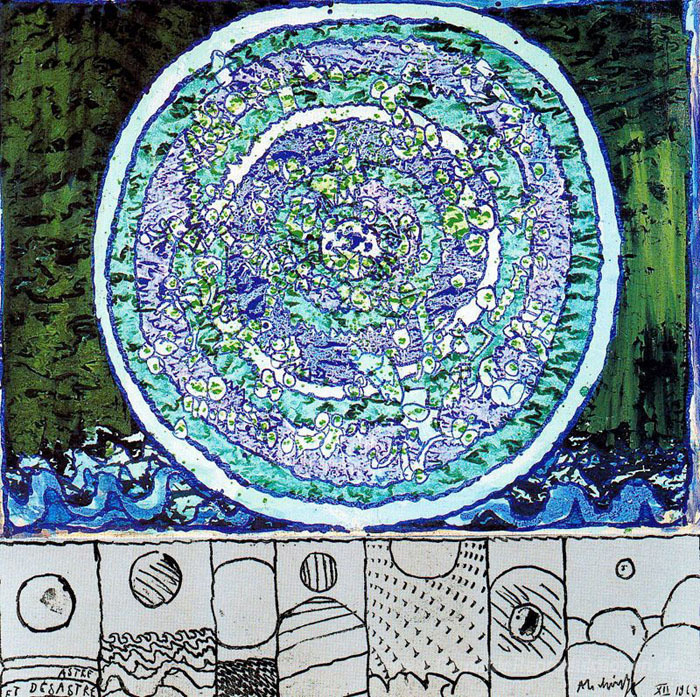 Wir bieten Ihnen eine handgefertigte Reproduktion auf Leinwand des berühmten Kunstwerks 'Astre Désastre' von Pierre Alechinsky, aus dem Reproduktionsmuseum.