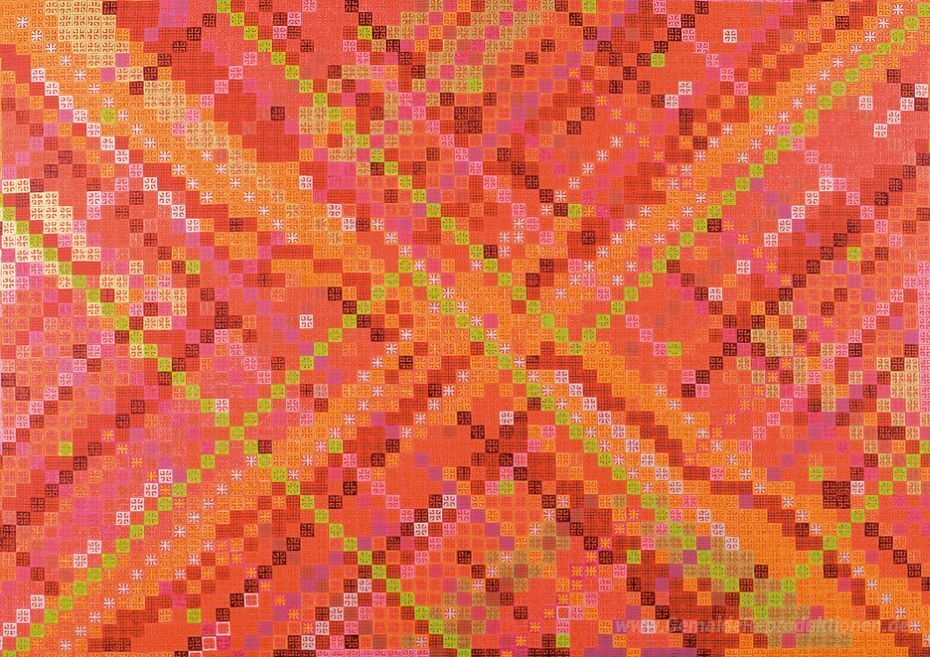 Wir bieten Ihnen eine handgefertigte Reproduktion auf Leinwand des berühmten Kunstwerks 'Aussehen der Kreuze 2007-5' von Ding Yi, aus dem Reproduktionsmuseum.