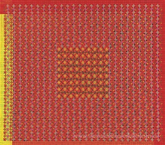 Wir bieten Ihnen eine handgefertigte Reproduktion auf Leinwand des berühmten Kunstwerks 'Aussehen der Kreuze' von Ding Yi, aus dem Reproduktionsmuseum.