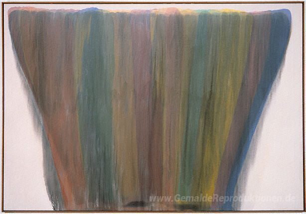 Wir bieten Ihnen eine handgefertigte Reproduktion auf Leinwand des berühmten Kunstwerks 'Ayin' von Morris Louis, aus dem Reproduktionsmuseum.