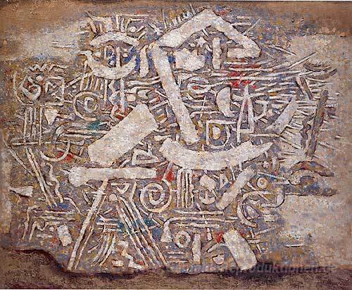 Wir bieten Ihnen eine handgefertigte Reproduktion auf Leinwand des berühmten Kunstwerks 'Aztec Paar' von Willi Baumeister, aus dem Reproduktionsmuseum.