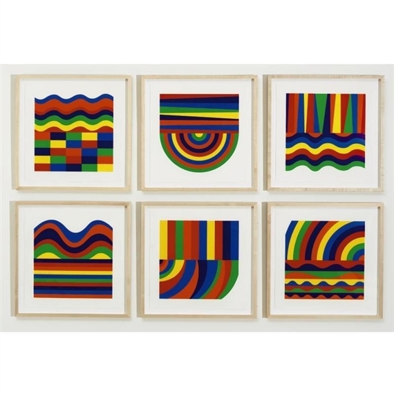 Wir bieten Ihnen eine handgefertigte Reproduktion auf Leinwand des berühmten Kunstwerks 'Bögen und Bänder in den Farben' von Sol LeWitt, aus dem Reproduktionsmuseum.