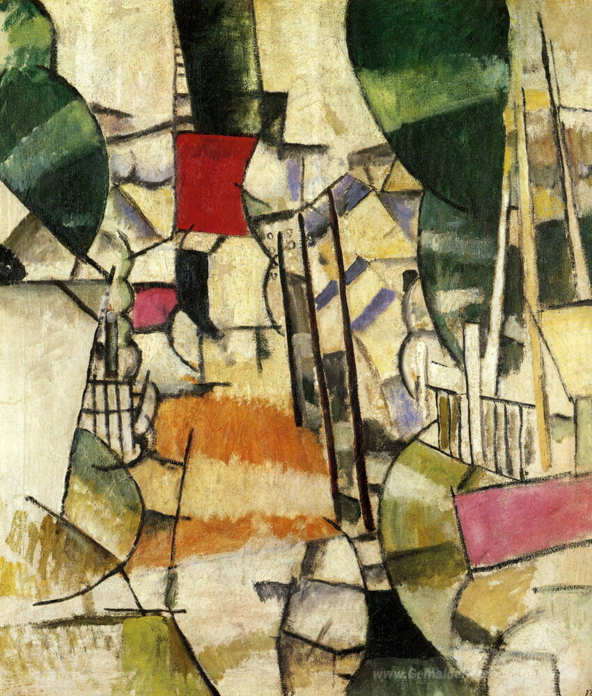 Wir bieten Ihnen eine handgefertigte Reproduktion auf Leinwand des berühmten Kunstwerks 'Bahnübergang' von Fernand Leger, aus dem Reproduktionsmuseum.