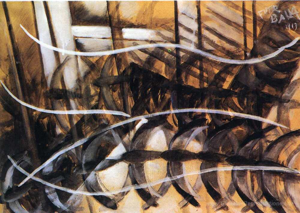 Wir bieten Ihnen eine handgefertigte Reproduktion auf Leinwand des berühmten Kunstwerks 'Bewegungslinien und Dynamic Erbfolge' von Giacomo Balla, aus dem Reproduktionsmuseum.