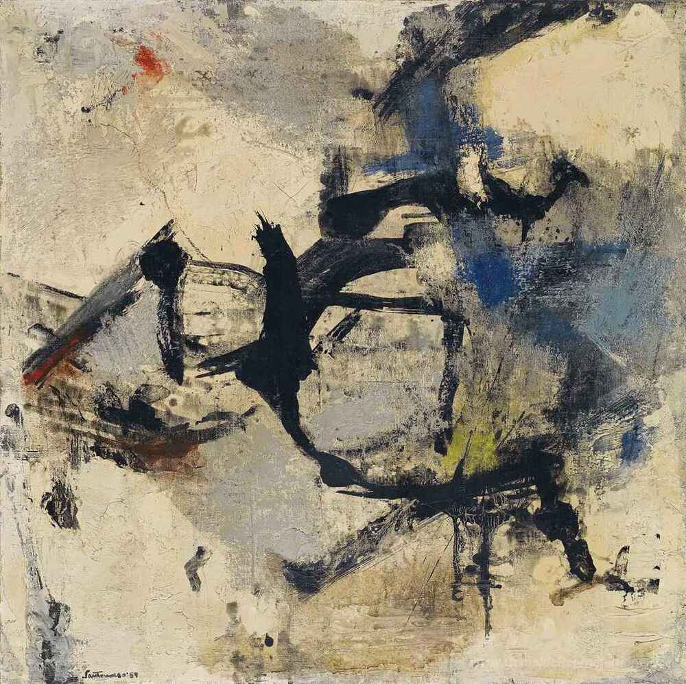 Willkommen in der faszinierenden Welt der Ölgemälde, wo jede Leinwand eine Geschichte erzählt. Unser herausragendes Werk, Bianco e nero di Spagna, geschaffen vom Meister des Informel, Giuseppe Santomaso, vereint zeitlose Eleganz mit künstlerischer Tiefe. Santomaso, bekannt für seine unverwechselbare gestische Umsetzung, nutzt die Kraft der traditionellen Ölmalerei, um Bewegung und Emotionen auf faszinierende Weise zu transportieren.