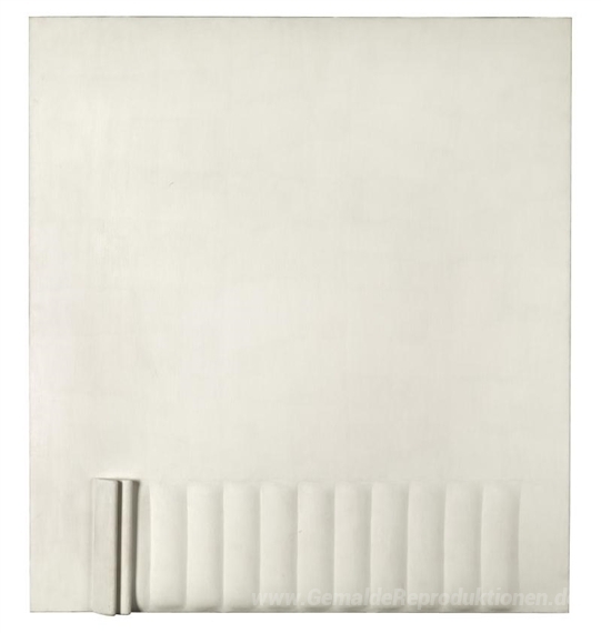 Wir bieten Ihnen eine handgefertigte Reproduktion auf Leinwand des berühmten Kunstwerks 'Bianco' von Agostino Bonalumi, aus dem Reproduktionsmuseum.