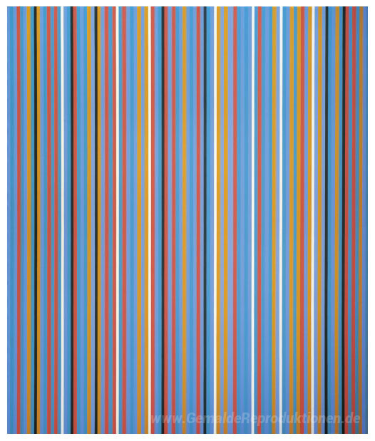 Wir bieten Ihnen eine handgefertigte Reproduktion auf Leinwand des berühmten Kunstwerks 'Big Blue' von Bridget Riley, aus dem Reproduktionsmuseum.