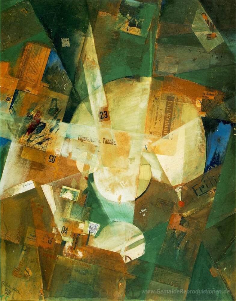 Wir bieten Ihnen eine handgefertigte Reproduktion auf Leinwand des berühmten Kunstwerks 'Bild mit Licht-Center' von Kurt Schwitters, aus dem Reproduktionsmuseum.