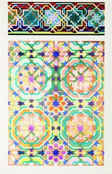 Wir bieten Ihnen eine handgefertigte Reproduktion auf Leinwand des berühmten Kunstwerks 'Bilder und Borders III' von Joyce Kozloff, aus dem Reproduktionsmuseum.