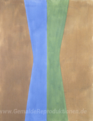Wir bieten Ihnen eine handgefertigte Reproduktion auf Leinwand des berühmten Kunstwerks 'Blau, Grün, Split' von Jack Bush, aus dem Reproduktionsmuseum.