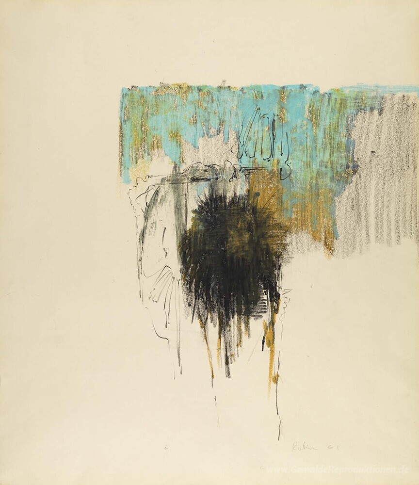 Wir bieten Ihnen eine handgefertigte Reproduktion auf Leinwand des berühmten Kunstwerks 'Blau und Ocker' von Richards Ruben, aus dem Reproduktionsmuseum.