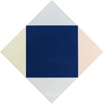 Wir bieten Ihnen eine handgefertigte Reproduktion auf Leinwand des berühmten Kunstwerks 'Blauer kern' von Max Bill, aus dem Reproduktionsmuseum.