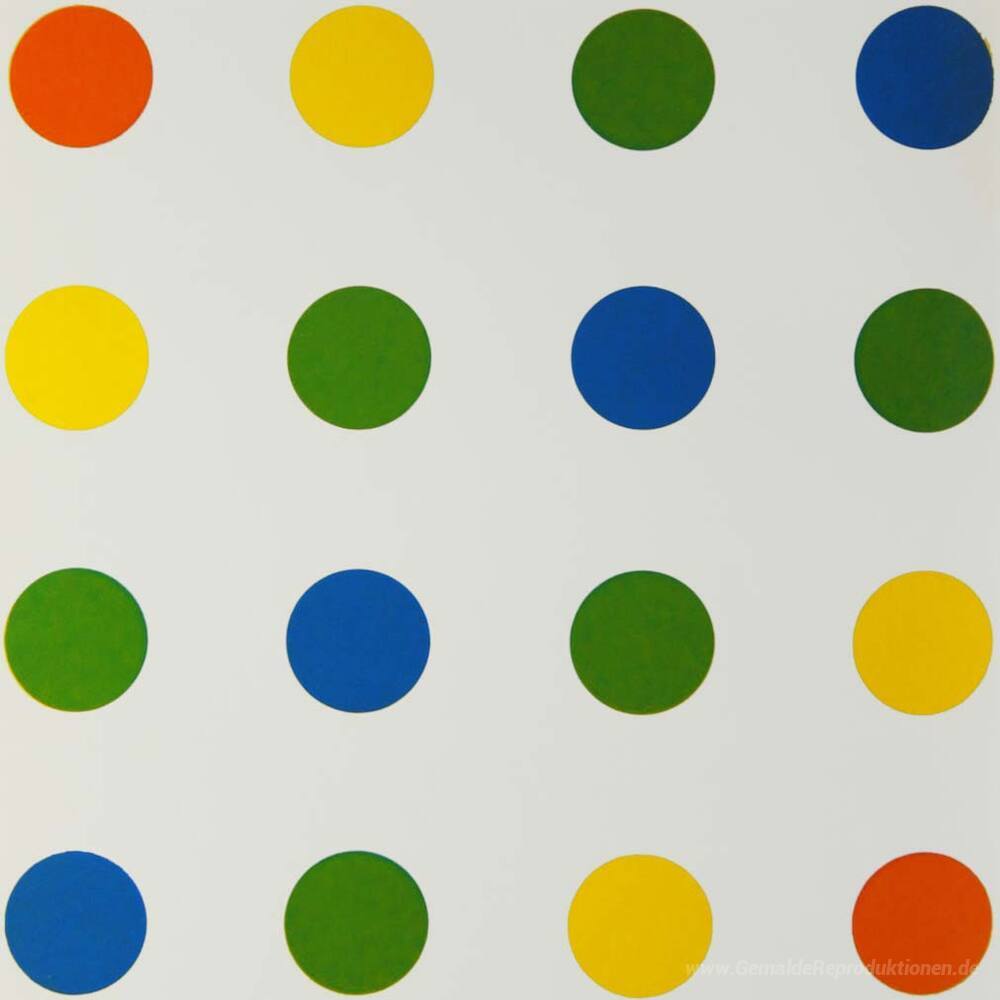 Wir bieten Ihnen eine handgefertigte Reproduktion auf Leinwand des berühmten Kunstwerks 'Bleu-Vert-Jaune-orange' von Francois Morellet, aus dem Reproduktionsmuseum.