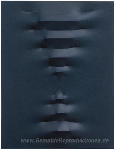 Wir bieten Ihnen eine handgefertigte Reproduktion auf Leinwand des berühmten Kunstwerks 'Blu' von Agostino Bonalumi, aus dem Reproduktionsmuseum.