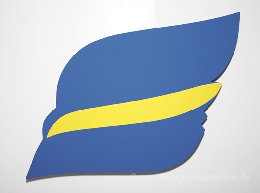 Wir bieten Ihnen eine handgefertigte Reproduktion auf Leinwand des berühmten Kunstwerks 'Blueglide' von Jack Youngerman, aus dem Reproduktionsmuseum.