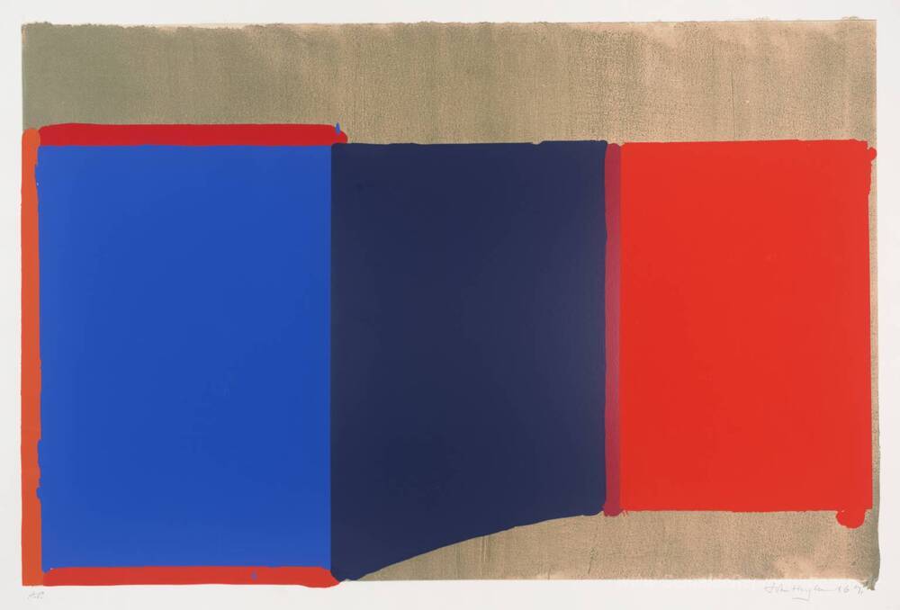 Wir bieten Ihnen eine handgefertigte Reproduktion auf Leinwand des berühmten Kunstwerks 'Blues, Reds' von John Hoyland, aus dem Reproduktionsmuseum.