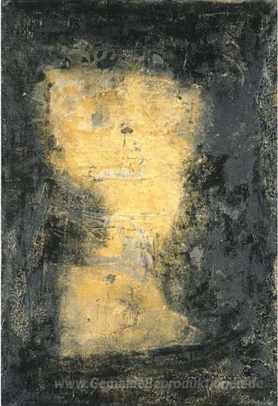 Wir bieten Ihnen eine handgefertigte Reproduktion auf Leinwand des berühmten Kunstwerks 'Bolo' von Emil Schumacher, aus dem Reproduktionsmuseum.