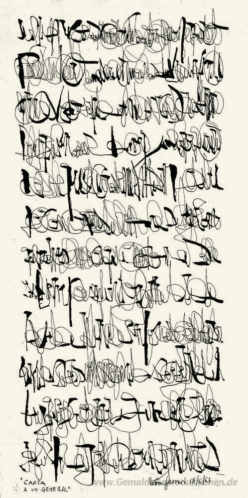 Wir bieten Ihnen eine handgefertigte Reproduktion auf Leinwand des berühmten Kunstwerks 'Brief an die General' von Leon Ferrari, aus dem Reproduktionsmuseum.