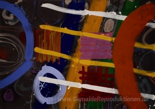 Wir bieten Ihnen eine handgefertigte Reproduktion auf Leinwand des berühmten Kunstwerks 'Buchanan' von Albert Irvin, aus dem Reproduktionsmuseum.