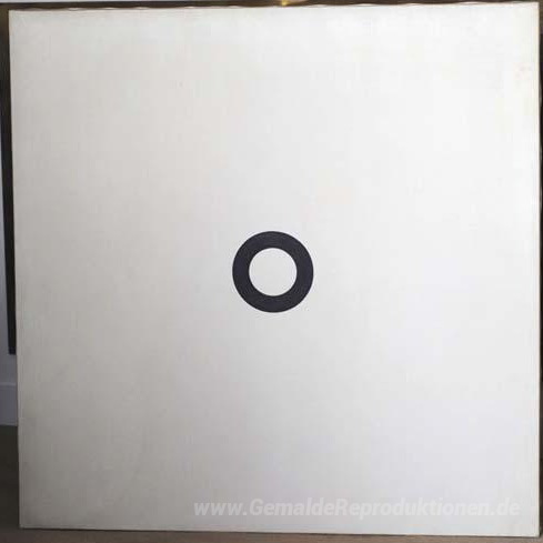 Wir bieten Ihnen eine handgefertigte Reproduktion auf Leinwand des berühmten Kunstwerks 'Cercle Noir sur fond blanc' von Daniel Buren, aus dem Reproduktionsmuseum.