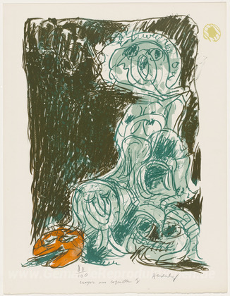 Wir bieten Ihnen eine handgefertigte Reproduktion auf Leinwand des berühmten Kunstwerks 'Chance und seine Mutter (Le hasard et sa mère) aus dem Portfolio' von Pierre Alechinsky, aus dem Reproduktionsmuseum.