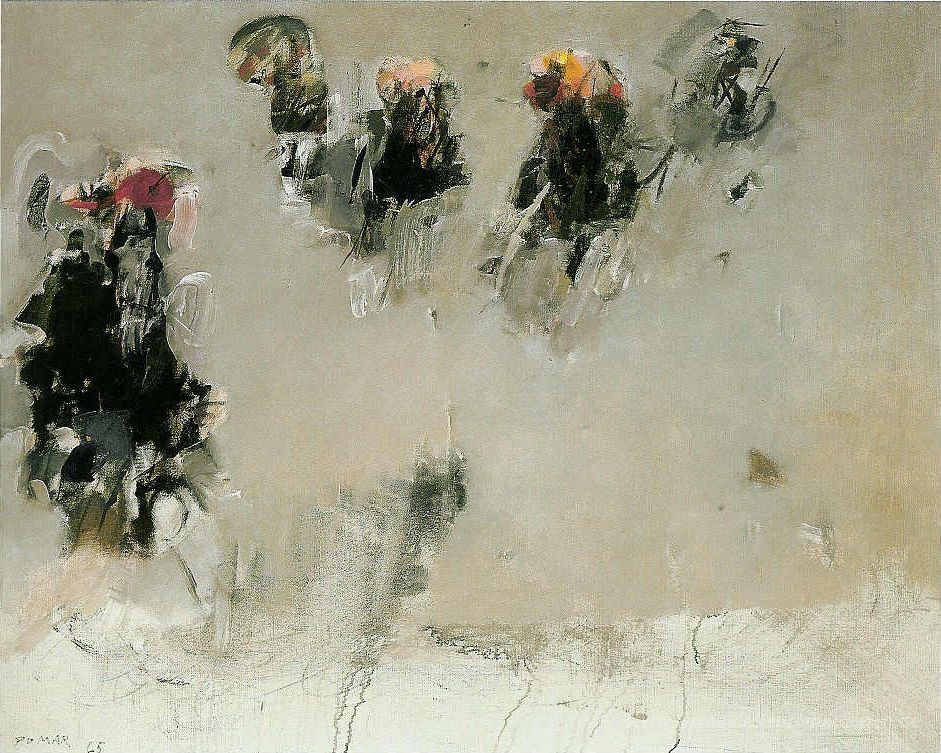 Wir bieten Ihnen eine handgefertigte Reproduktion auf Leinwand des berühmten Kunstwerks 'Chantilly I' von Julio Pomar, aus dem Reproduktionsmuseum.