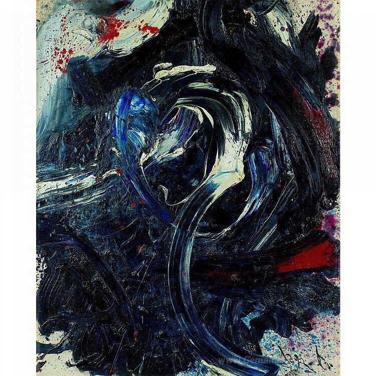 Willkommen in unserer exquisiten Kollektion von Ölgemälden, wo Kunst und Leidenschaft aufeinandertrafen. Unter den herausragenden Künstlern präsentieren wir Kazuo Shiraga, ein Meister der avantgardistischen Bewegung, dessen Werk Chisuisei Tetpihaku eindrucksvoll die Verschmelzung von Tradition und Experimentierfreude verkörpert. Shiragas einzigartiger Stil, geprägt von dynamischen Pinselstrichen und einer lebendigen Farbpalette, zieht den Betrachter in eine Welt voller Emotionen und Energie.