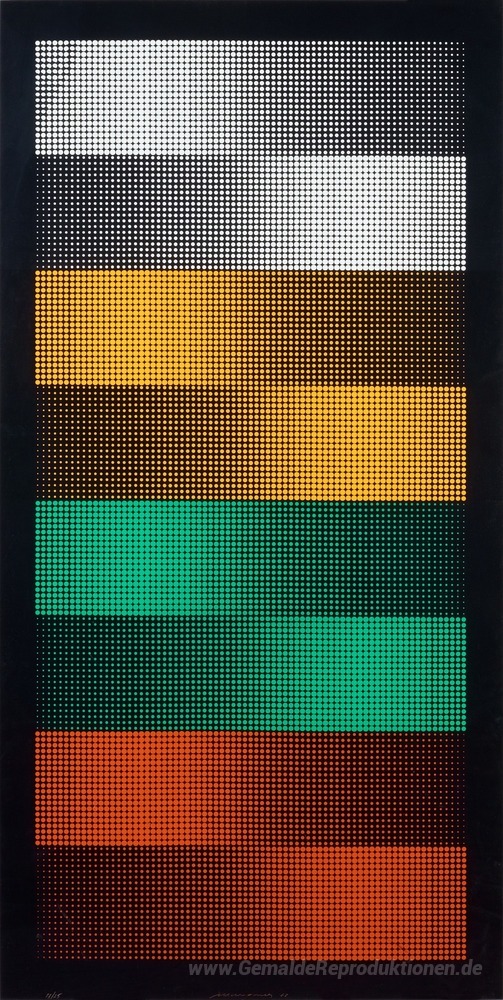 Wir bieten Ihnen eine handgefertigte Reproduktion auf Leinwand des berühmten Kunstwerks 'Cinetic Zusammensetzung' von Almir Mavignier, aus dem Reproduktionsmuseum.
