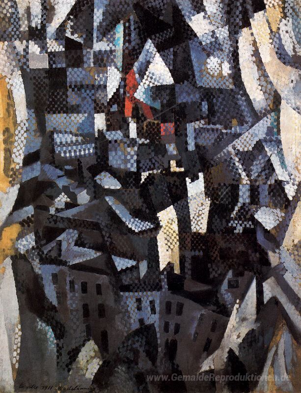 Wir bieten Ihnen eine handgefertigte Reproduktion auf Leinwand des berühmten Kunstwerks 'Ciudades. Stadt' von Robert Delaunay, aus dem Reproduktionsmuseum.