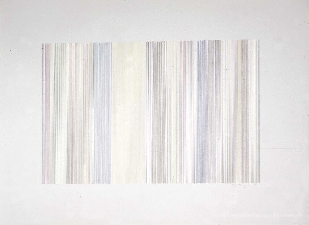 Wir bieten Ihnen eine handgefertigte Reproduktion auf Leinwand des berühmten Kunstwerks 'Cold Turkey' von Gene Davis, aus dem Reproduktionsmuseum.