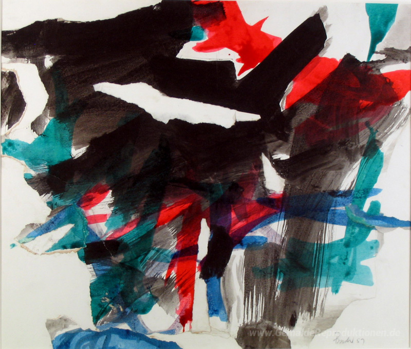 Wir bieten Ihnen eine handgefertigte Reproduktion auf Leinwand des berühmten Kunstwerks 'Collage für Weihnachten' von Jack Bush, aus dem Reproduktionsmuseum.