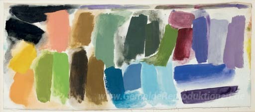 Wir bieten Ihnen eine handgefertigte Reproduktion auf Leinwand des berühmten Kunstwerks 'Color Test' von Friedel Dzubas, aus dem Reproduktionsmuseum.