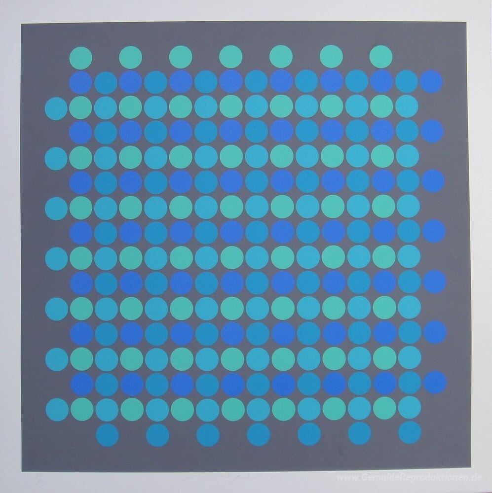 Wir bieten Ihnen eine handgefertigte Reproduktion auf Leinwand des berühmten Kunstwerks 'Composição' von Almir Mavignier, aus dem Reproduktionsmuseum.