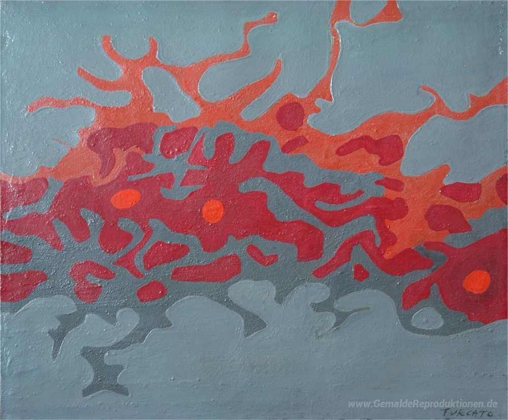 Wir bieten Ihnen eine handgefertigte Reproduktion auf Leinwand des berühmten Kunstwerks 'Composizione grigio-rosa' von Giulio Turcato, aus dem Reproduktionsmuseum.