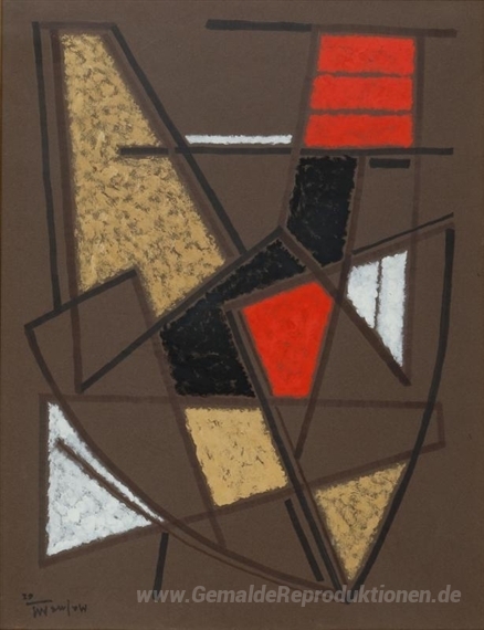 Wir bieten Ihnen eine handgefertigte Reproduktion auf Leinwand des berühmten Kunstwerks 'Composizione' von Alberto Magnelli, aus dem Reproduktionsmuseum.