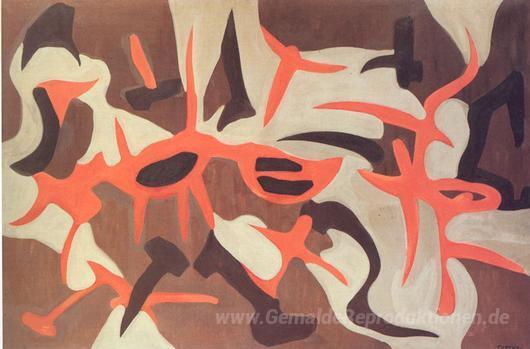 Wir bieten Ihnen eine handgefertigte Reproduktion auf Leinwand des berühmten Kunstwerks 'Composizione' von Giulio Turcato, aus dem Reproduktionsmuseum.