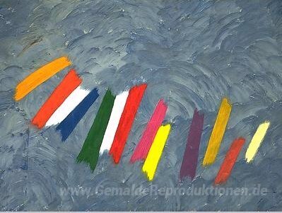 Wir bieten Ihnen eine handgefertigte Reproduktion auf Leinwand des berühmten Kunstwerks 'Concerto' von Jack Bush, aus dem Reproduktionsmuseum.