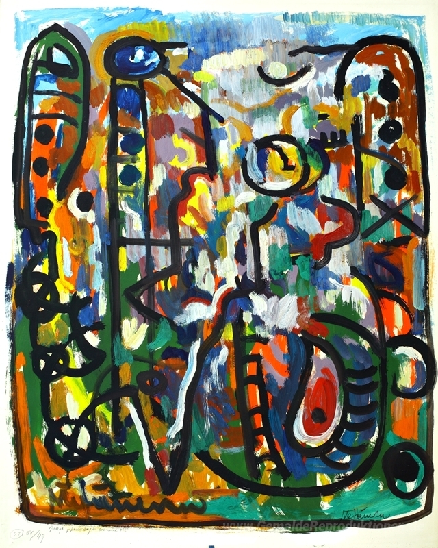 Wir bieten Ihnen eine handgefertigte Reproduktion auf Leinwand des berühmten Kunstwerks 'Cosmic Charaktere' von George Stefanescu-Ramnic , aus dem Reproduktionsmuseum.