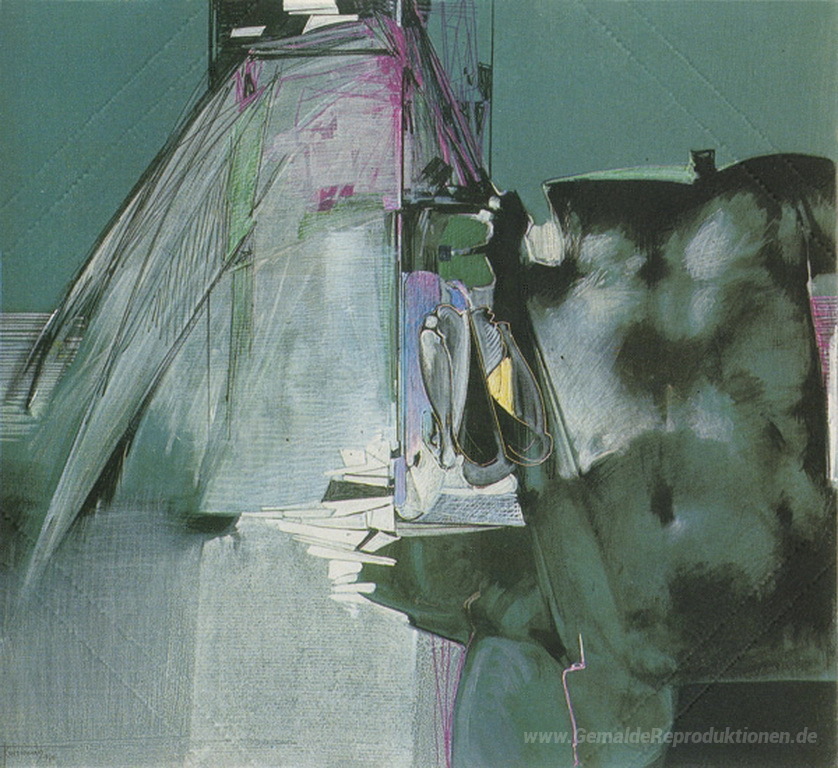 Wir bieten Ihnen eine handgefertigte Reproduktion auf Leinwand des berühmten Kunstwerks 'Das Alibi Allotrop' von Alekos Kontopoulos , aus dem Reproduktionsmuseum.