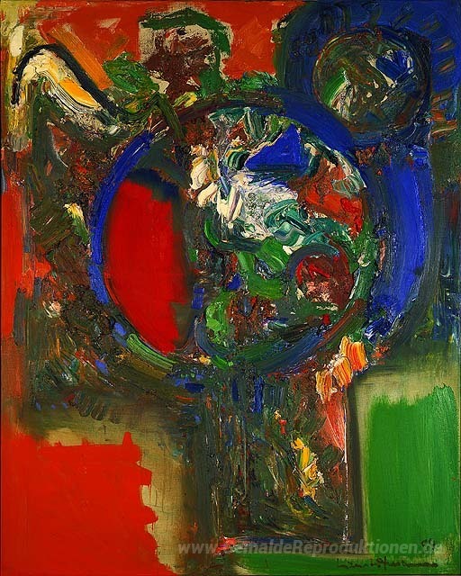 Wir bieten Ihnen eine handgefertigte Reproduktion auf Leinwand des berühmten Kunstwerks 'Das Bouquet' von Hans Hofmann, aus dem Reproduktionsmuseum.